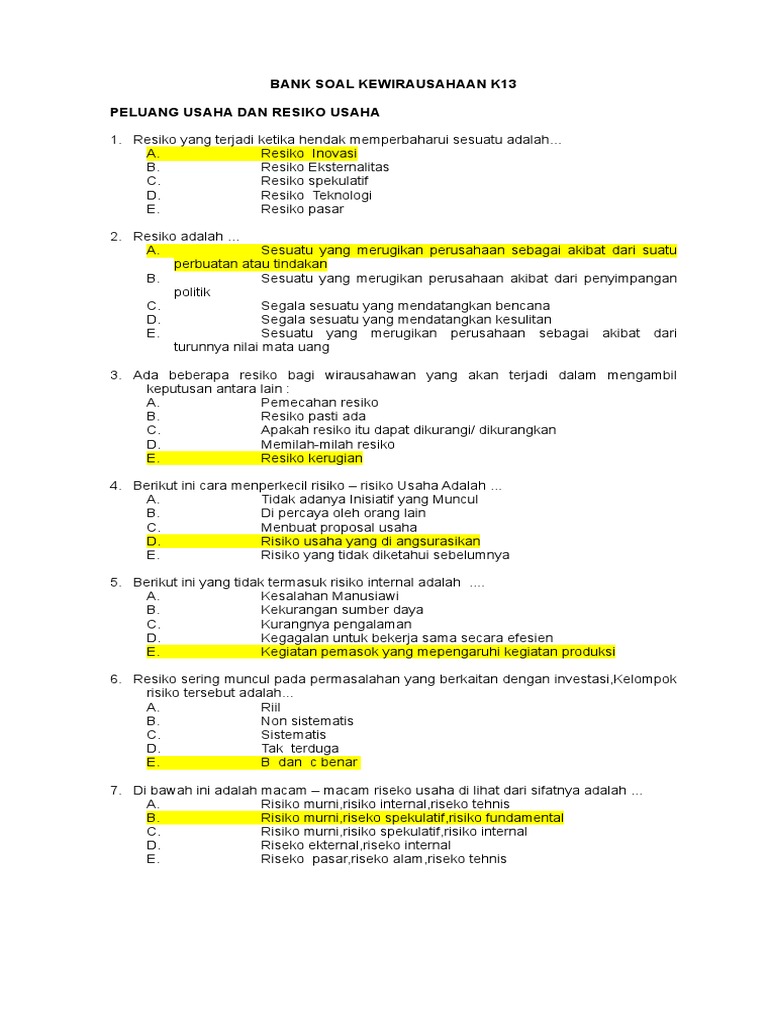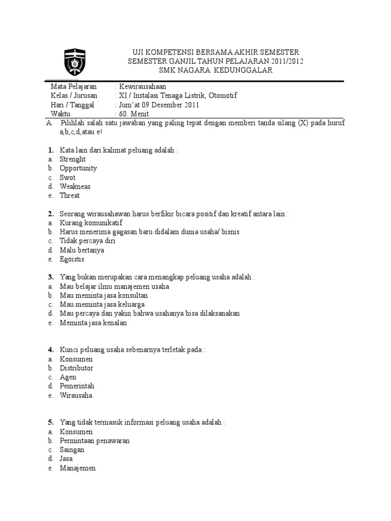 Latihan Soal Bapak Taruna Kewirausahaan Xii Al Jurusan