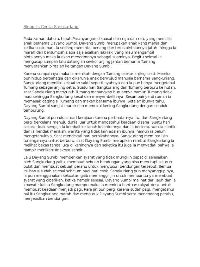 Kesimpulan dari cerita sangkuriang. 12 BAB III PENUTUP A. Bab ini berisi tentang kesimpulan yang dapat diambil dari. Setiap kali melakukan perburuan di hutan.